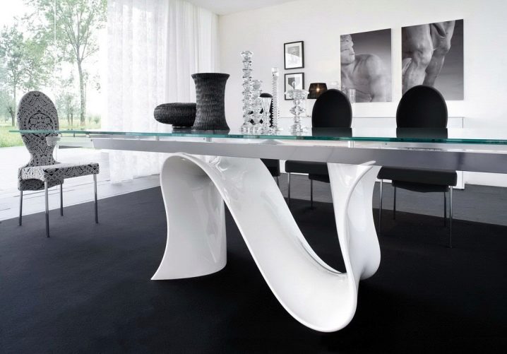 Metallstrukturen werden bei der Schaffung und Hinzufügung eines modernen Interieurs relevant sein; Sie sind schwer und praktisch zu benutzen. In der Regel besteht der Tischrahmen aus hochwertigem Metall, die Tischplatte aus Kunst- oder Naturstein, Glas, Kunststoff, Holz, Spanplatten, MDF.