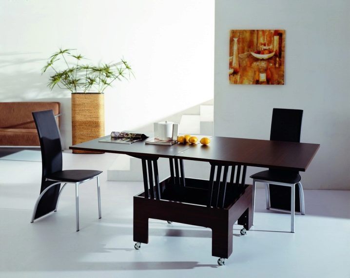 - quadratische Form, kompakte Modelle von Transformatoren werden traditionell in einer kleinen Größe hergestellt, um nicht zu umständlich aussehen; es ist vernünftig, sie für eine kleine Küche im Chruschtschow zu kaufen und sie gegen eine Wand zu installieren, um zusätzlichen Raum zu schaffen.