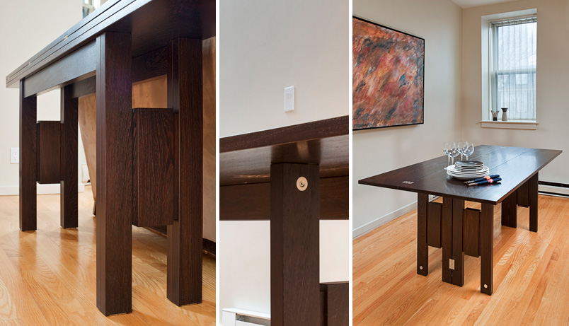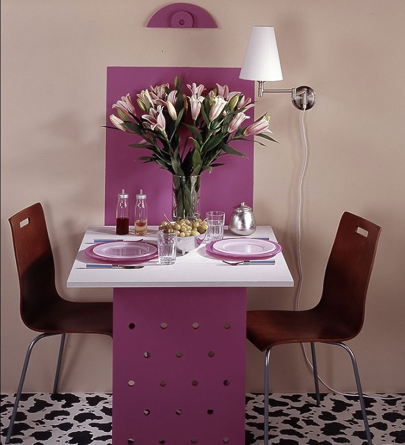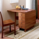 Der eingebaute Klapptisch, der sich mit einer Hand in eine Schublade verwandeln lässt, fügt sich perfekt in das Interieur von Minimalismus, Konstruktivismus, Öko, Provence oder Chebbi-Chic ein.