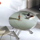 In der Rangliste der beliebtesten Modelle sind italienische Glastische mit Fotodruck dekoriert. Originalprodukte "Transformator" haben eine breite Palette von thematischen Zeichnungen. Dies kann eine Ausstellung der Stadt, eine Weltkarte, Makrofotografie der Mikrowelt, Stillleben oder Porträts im Stil der Pop Art sein. Sie können ein solches Möbelstück in verschiedenen Positionen zurücklassen, vom Esstisch bis zu einem Miniaturschrank für Topfblumen.
