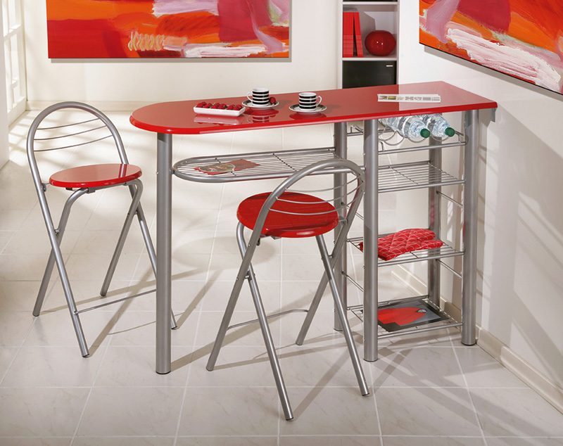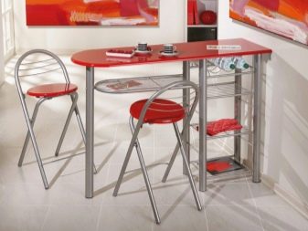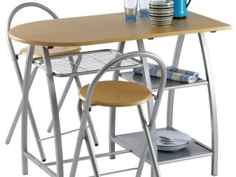 Ein interessantes Modell ist das Frühstücksset für die Küche. Es ist mit speziellen Stühlen und einem Sofa ausgestattet, wodurch es zu einem Bartresen werden kann. Das Produkt ist geeignet für Küchen "beraubt" in Quadratmetern.Hinter ihm kann man aber in entspannter Atmosphäre wunderbar frühstücken. Das Material für die Arbeitsplatte dieses Typs wird die beste Option Kunststoff sein - es ist praktisch und leicht zu reinigen.