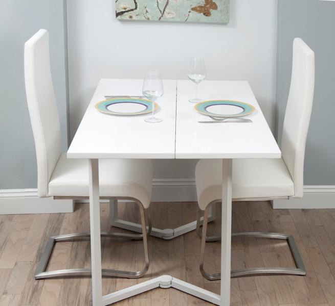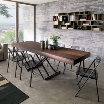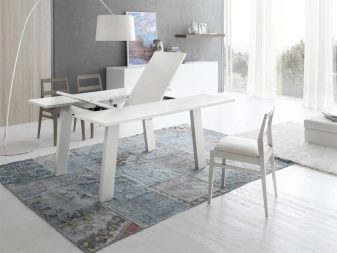 Für eine kleine Küche wird ein verwandelter Tisch ein echter Fund sein. Ihr Vorteil liegt in der kompakten Größe, einer breiten Palette von Design. Sie "fördern" Minimalismus und lakonische Dekor des Interieurs, passen perfekt in die Stile von High-Tech, Fusion, Konservatismus, Industrie, Loft, etc. Ihr Komfort und Funktionalität des Tisches selbst hängt von der richtigen Wahl der Form und Materialien ab.