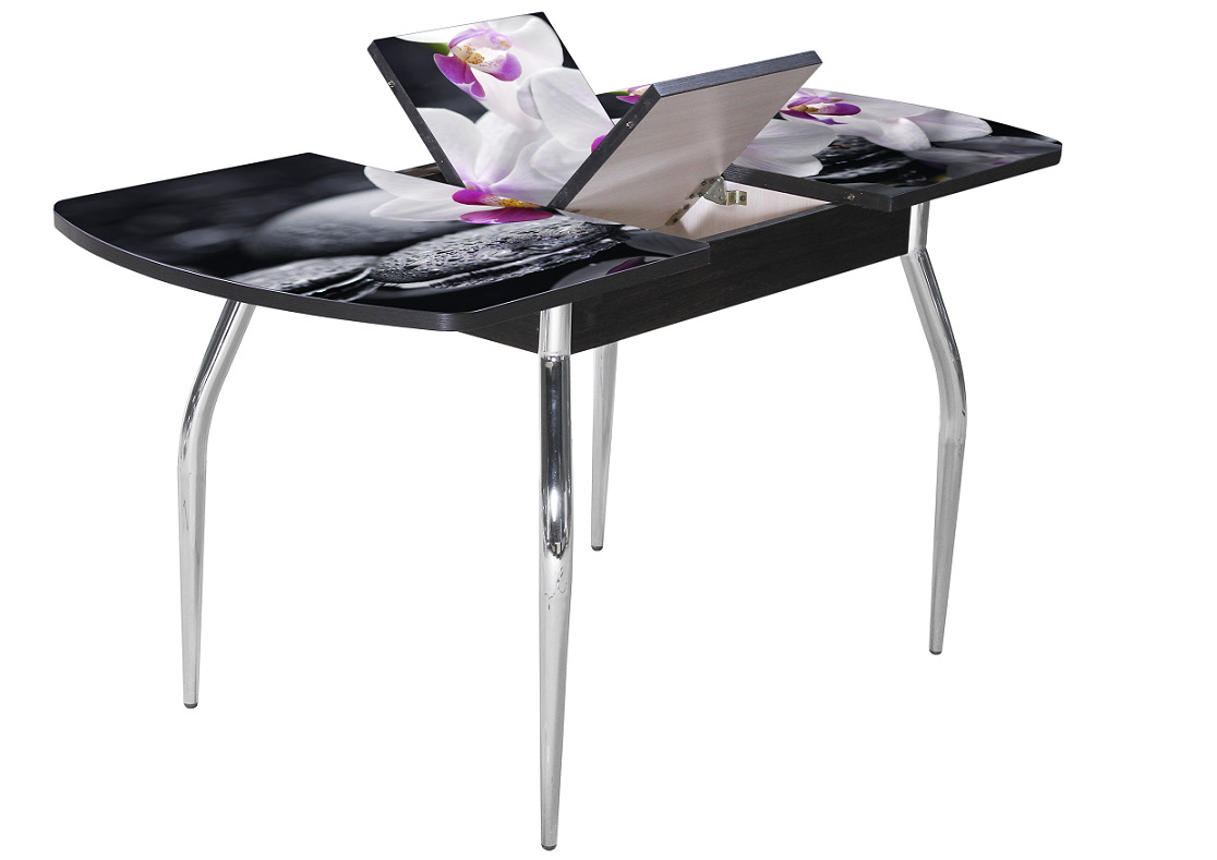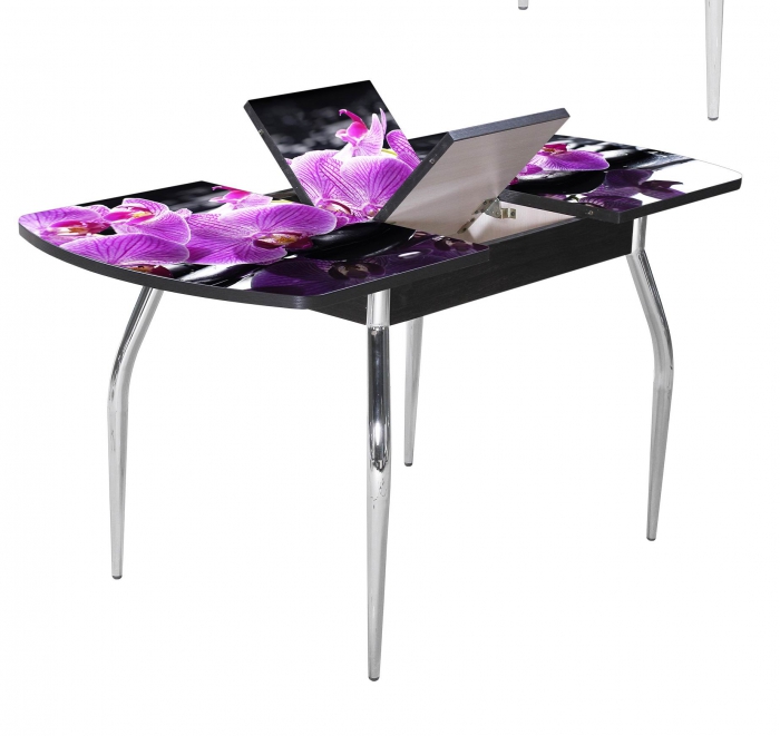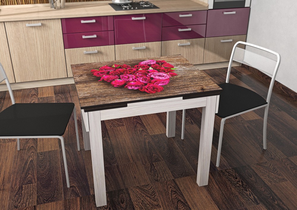 Ein wichtiger Faktor bei der Auswahl ist das Muster und Dekor des Tisches. Sie können sich dem Fotodruck zuwenden, indem Sie Holz oder Naturstein imitieren. Als Zeichnung für einen Küchenschiebetisch können Sie einen gemusterten Druck, florale oder animalische Motive, allerlei Stilleben, Stadttexte, Landschaften etc. wählen. Fotodruck wird die eleganteste Optik auf Glasdesigns sein. Gehärtetes, hitzebeständiges Material kann das Aussehen eines solchen Produkts nicht beeinträchtigen.