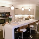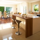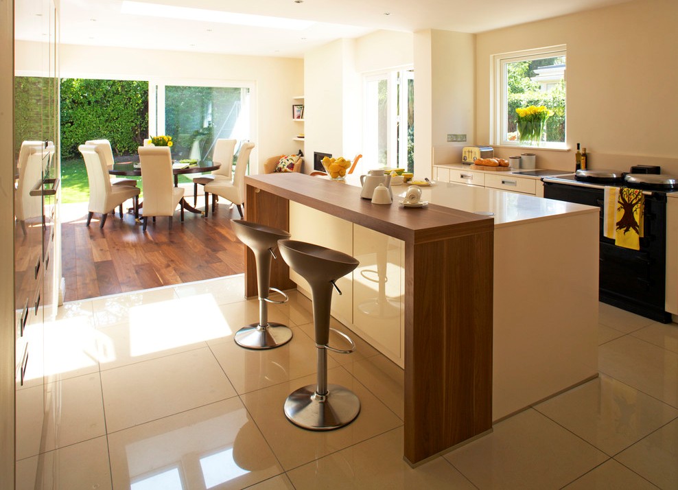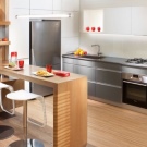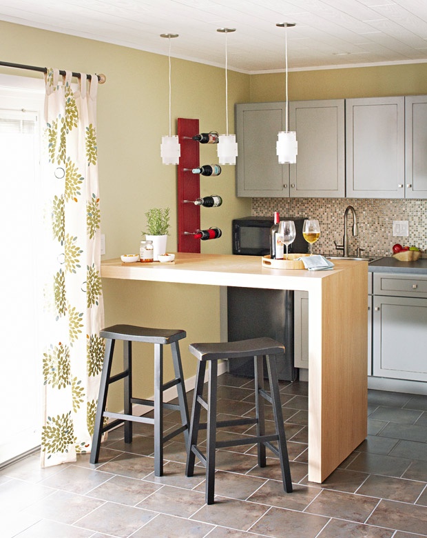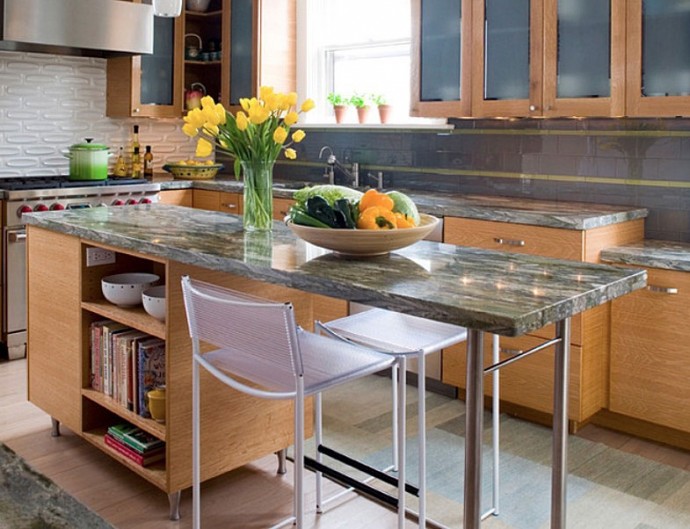 In einer zu einfachen Küche kann der Essbereich weit vom Herd entfernt sein, dann wird der Tisch zum Problem.Oft beschweren sich die Gastgeber solcher Lokale, dass man während einer Mahlzeit mehrmals vom Esszimmer zum Herd oder Kühlschrank gehen muss. Hier kann ein Bartresen nützlich sein, für den Sie sich schnell einen Snack machen oder beim Kochen entspannen können.