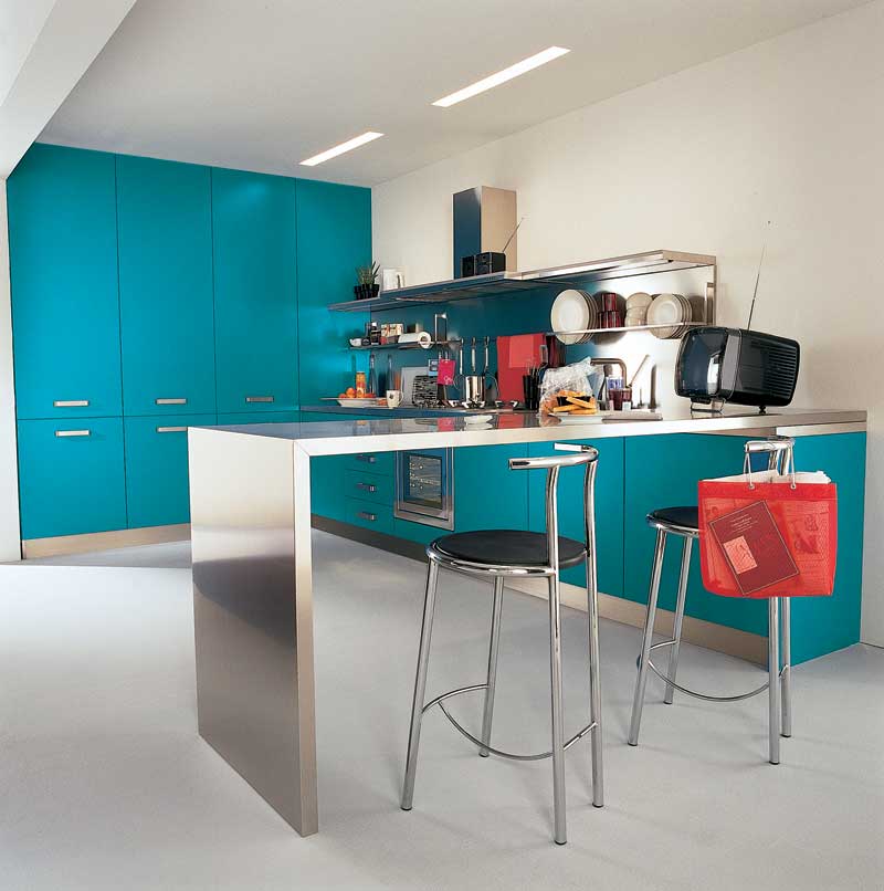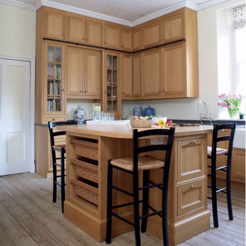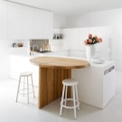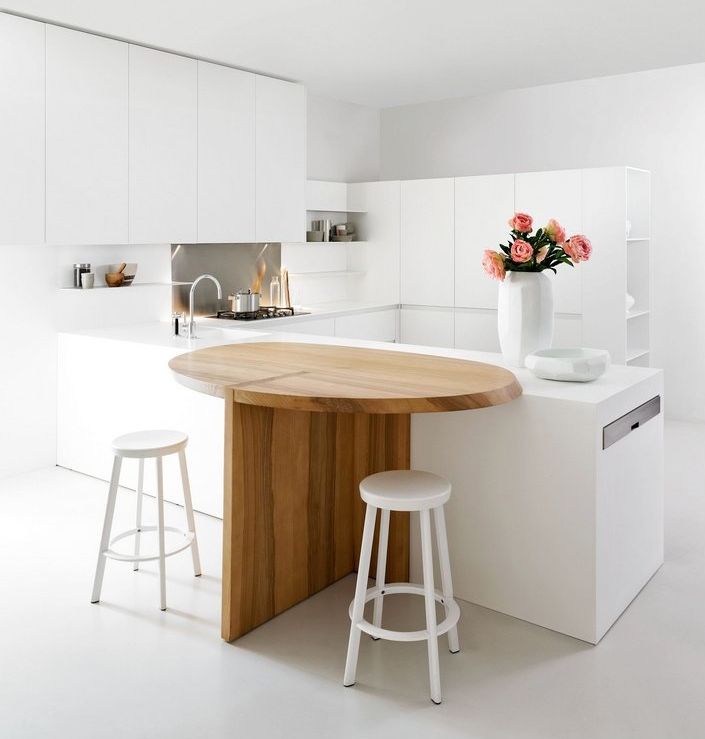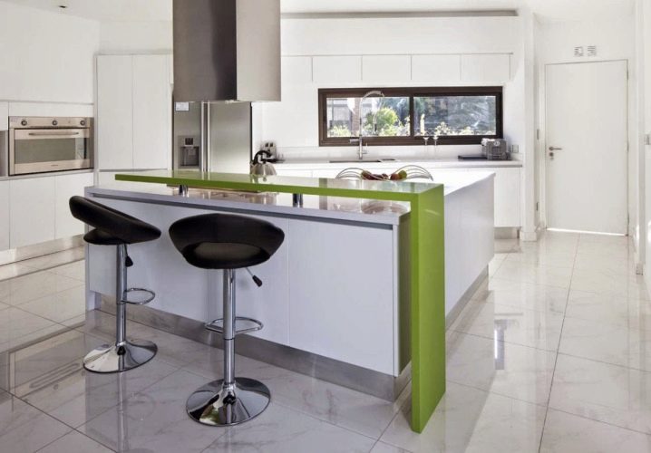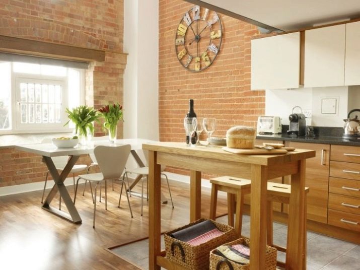 Diese Art von Möbeln ist von allem getrennt und wird hauptsächlich in großen Bereichen verwendet. Dies kann eine Küche nicht nur im Wohnzimmer sein, sondern auch in den Küchen von Cafés, Restaurants und anderen öffentlichen Einrichtungen. Ein übergroßer Insel-Stil-Tisch kann auch multifunktional sein und einen Platz zum Essen auf der einen Seite haben und andererseits als Küchenschrank verwendet werden.