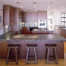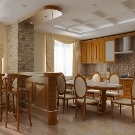 Raffinierte Bar-Modelle sind besser mit Lederpolsterung zu nehmen. Runde, mit zusätzlichen Trittbrett, werden solche Stühle die Küche, den Stil Ihrer Wohnung, Haus schmücken. Designs mit Armlehnen, Semi-Bar und sogar ein Sofa werden luxuriös aussehen. Letzteres wird hauptsächlich für Loungebereiche in der Küchenecke verwendet. Aus Holz gibt es jedem Gast ein unglaubliches Gefühl von Komfort.