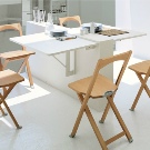 Klappstühle mit Rücken sind sehr beliebt.Erstens sind sie großartig, um den Bereich der Küche zu retten, sie sind ergonomisch, funktional. Zweitens kann von Raum zu Raum transportiert werden. Drittens, das Modell der Transformatoren aus Holz ist hervorragend in ein Regal für Topfblumen, einen Miniatur-Couchtisch, einen Ständer für Handtücher, Servietten, etc. modifiziert.