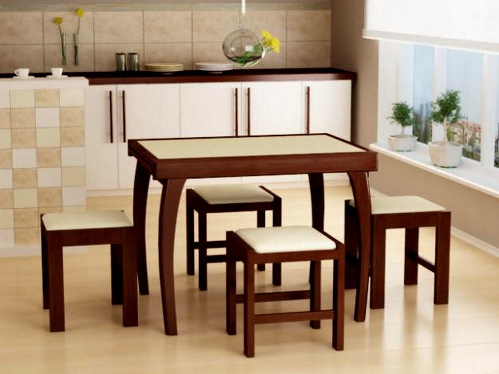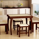 Je kleiner der Küchenbereich, desto funktioneller ist das Modell. Man sollte also auf Transformatoren achten, Produkte mit zahlreichen Modifikationen, die notfalls auch in Schränken versteckt werden können.Aber die Puffs und Stühle passen nicht immer gut in das Innere der Küche, nur in einigen seiner Versionen (Strandstil, rustikal, Provence, Tropen, Japanisch, etc.).