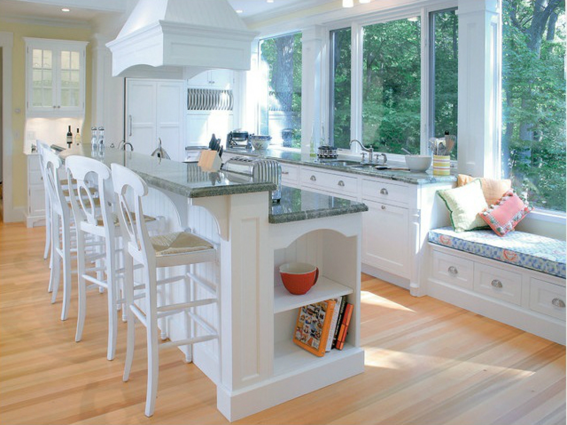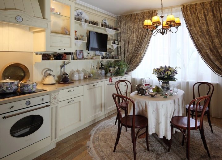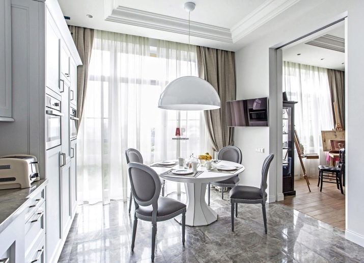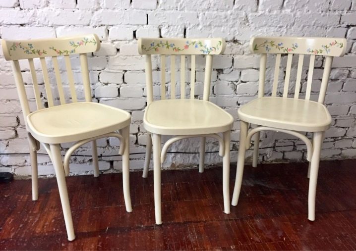 Mit solchen Produkten in der Küche werden Chesterfields, moderne Sessel, jede Küchenschürze und Lampen kombiniert. Sie passen in ein klassisches klassisches Interieur, französischen Schick mit einem Hauch von Brutalität (zum Beispiel ein Holzstuhl auf geschmiedeten Metallbeinen). Mit einer unaufdringlichen Inneneinrichtung können Sie Ihre Küche in einen eleganten "Sarg" verwandeln, in echte französische Renaissance-Villen oder in ein gemütliches Landhaus im rustikalen Stil.Fans des radikalen Minimalismus können auch eine einfache Konstruktionstechnik nutzen, Stühle aus Kiefernholz in Weiß lackieren und die Atmosphäre von Futurismus, Dynamik und Frische verleihen.