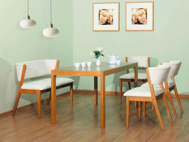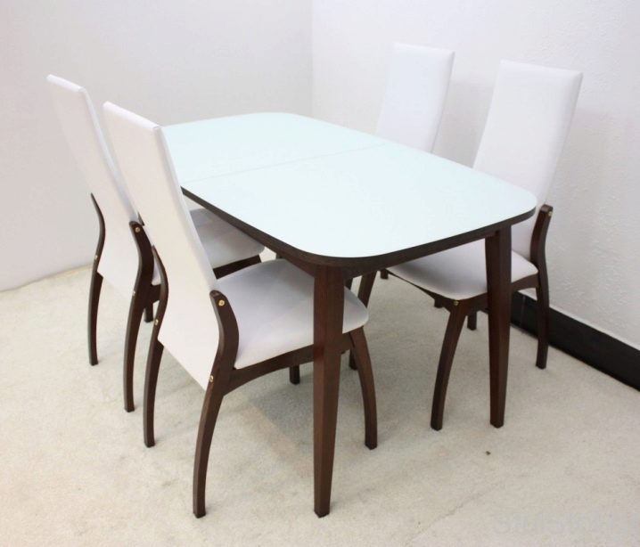 Walnussmodelle werden meistens gewählt, weil dieses Material buchstäblich Wärme, Komfort, angenehmen Schatten und eine schöne Textur ausstrahlt. Sie können das Design selbst machen oder der Fabrikproduktion vertrauen. Schneeweiße Modelle in Kombination mit einer mehrfarbigen Polsterung sehen sehr stilvoll aus. Sie werden jedem Kücheninneren Raffinesse verleihen, ihm Dynamik und Leichtigkeit verleihen.