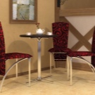 Der mysteriöse Glanz des Metalls verleiht dem Raum Eleganz und Feierlichkeit. Er verhält sich perfekt in Kombination mit anderen Ausrüstungsmaterialien.Es gibt Modelle von Gestell Stühlen, wo Polster nur für Sitze verwendet werden, und es gibt Optionen, bei denen der Rahmen vollständig unter einer dekorativen Abdeckung versteckt ist.