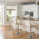 - Barhocker unterscheiden sich von Speisemöglichkeiten in der Größe. Ihre Höhe ist größer als die Standardgröße und wird individuell ausgewählt, abhängig von der Höhe des Balkens.