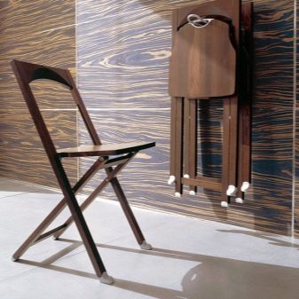 Klappstühle sind bequemer als Hocker. Ein Stuhl ist wiederum ein bequemer Stuhl. Sessel und Stühle sind aus den gleichen Materialien hergestellt, aber die Stühle sind komplizierter im Design und etwas teurer.Besonders stilvolle Stühle aus Bambus und Rattan, komplett mit Kaffee oder einem Schachtisch. Solche Stühle werden organisch in die Terrassen passen, und die Kombination aus Metall, Holz und Leder wird am Kamin stehen.