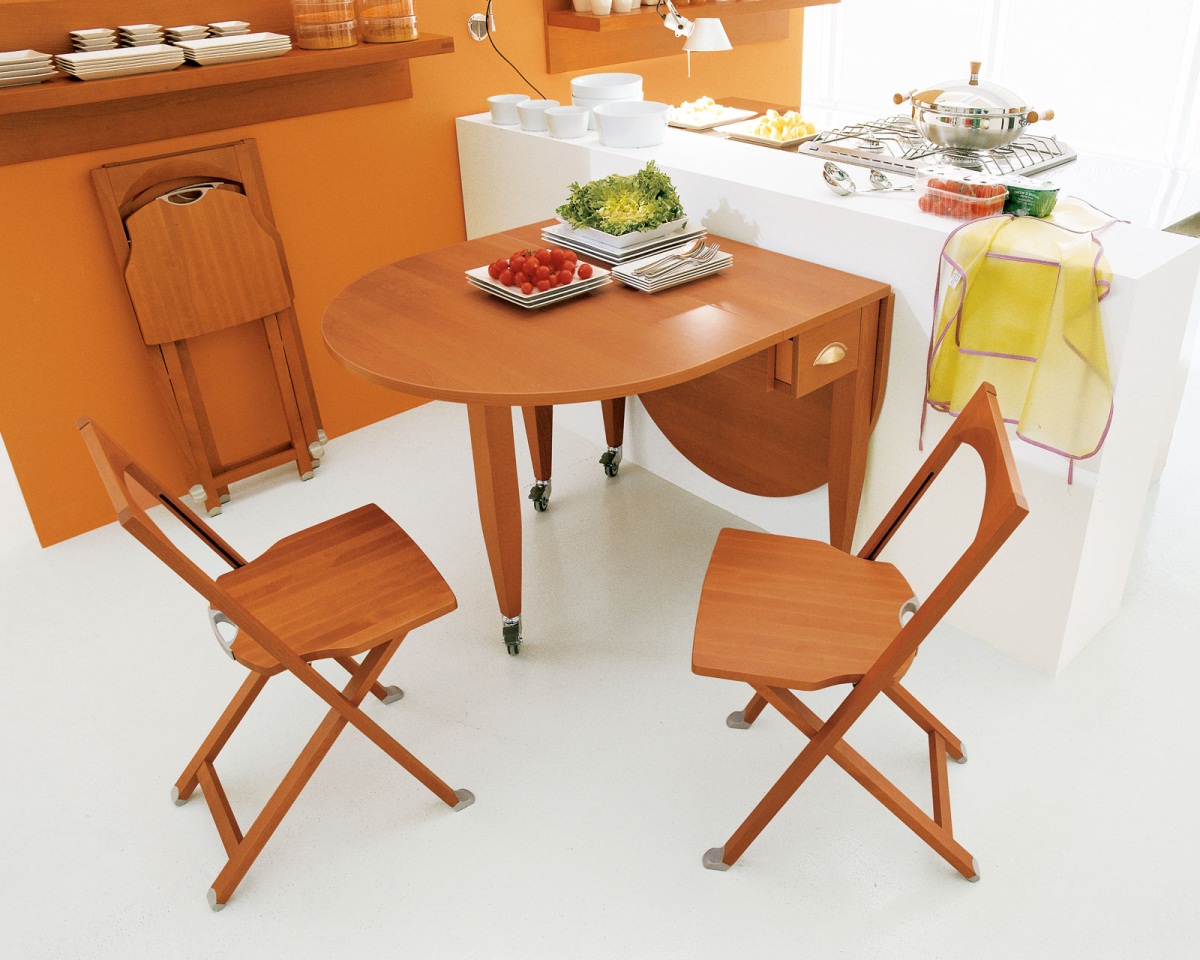 Nach Abschluss der Installation der Küchenzeile und der Entscheidung für den Essbereich ist es Zeit für die Stühle. Werden sie neben dem Tisch oft von inkonsequenten massiven, von der Anzahl der Familienmitglieder gekauft, so werden für die Organisation zusätzlicher Sitzplätze Klapptische angeschafft, deren Nutzung nicht nur durch die Küche ausgeschlossen ist.