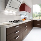 Die Installation einer geneigten Dunstabzugshaube wäre für alle stilistischen Entscheidungen von der klassischen Küche bis zur Avantgarde geeignet.Wenn Ihr Kücheninterieur in High-Tech- oder Minimalismus-Stil hergestellt wird, ist eine geneigte Dunstabzugshaube mit ihrem modernen Design die beste Lösung. Aus Metall gefertigt, hat es eine klare geometrische Form, die in der Küche dieser Stile gut aussehen wird.