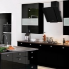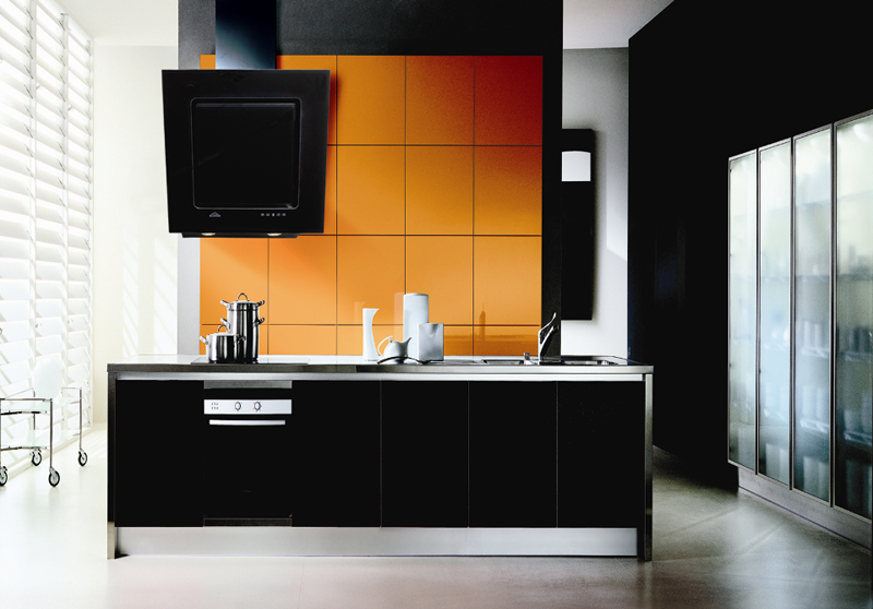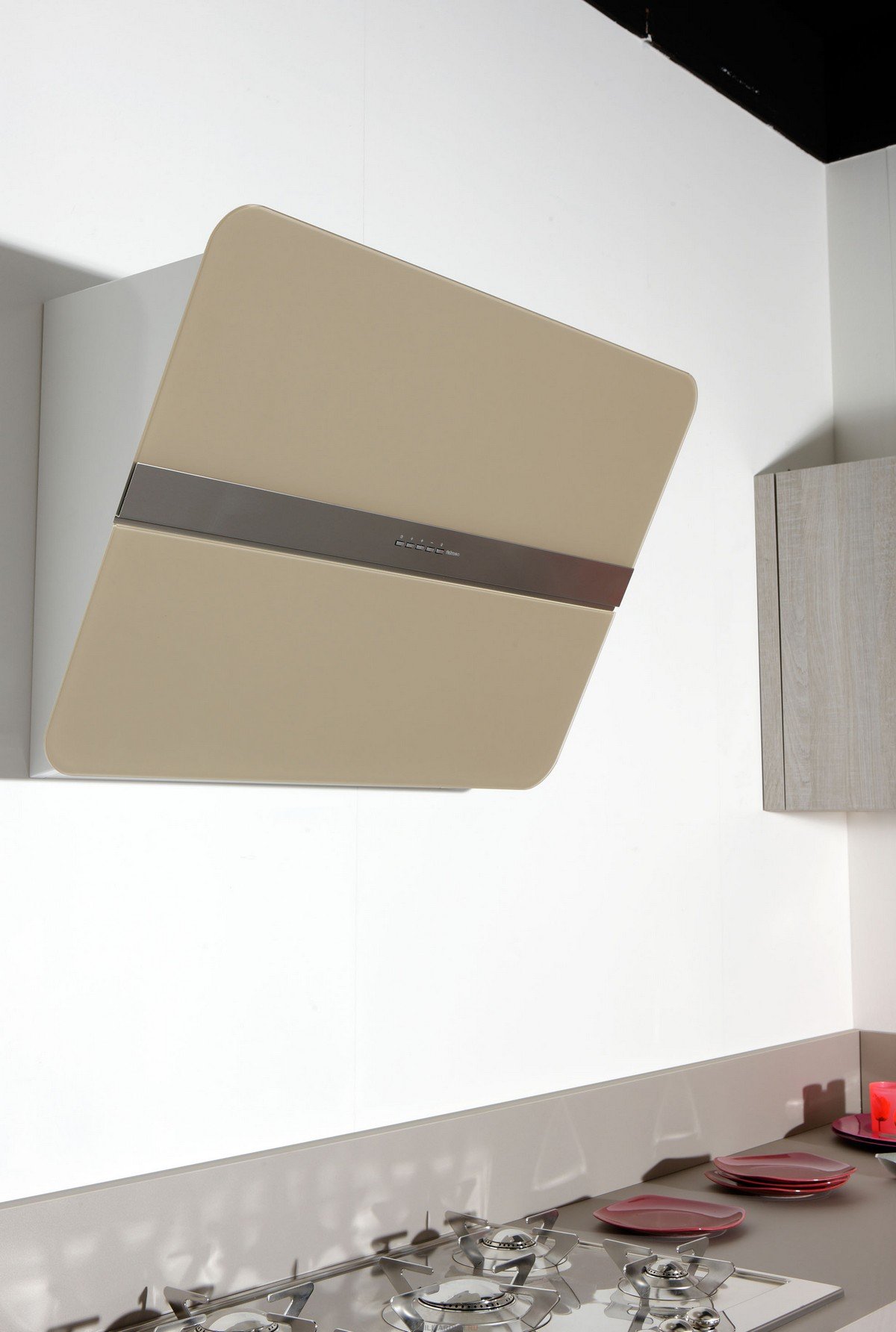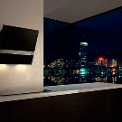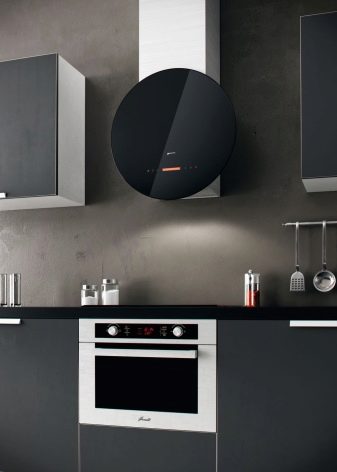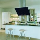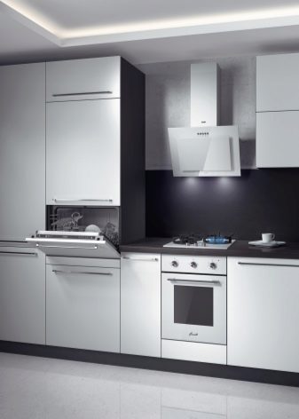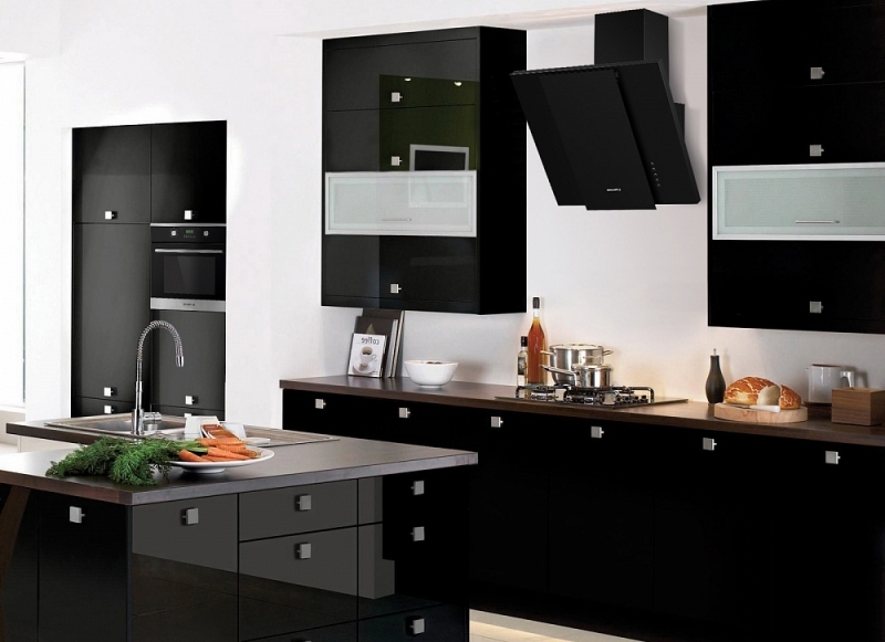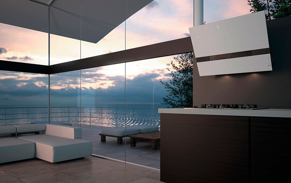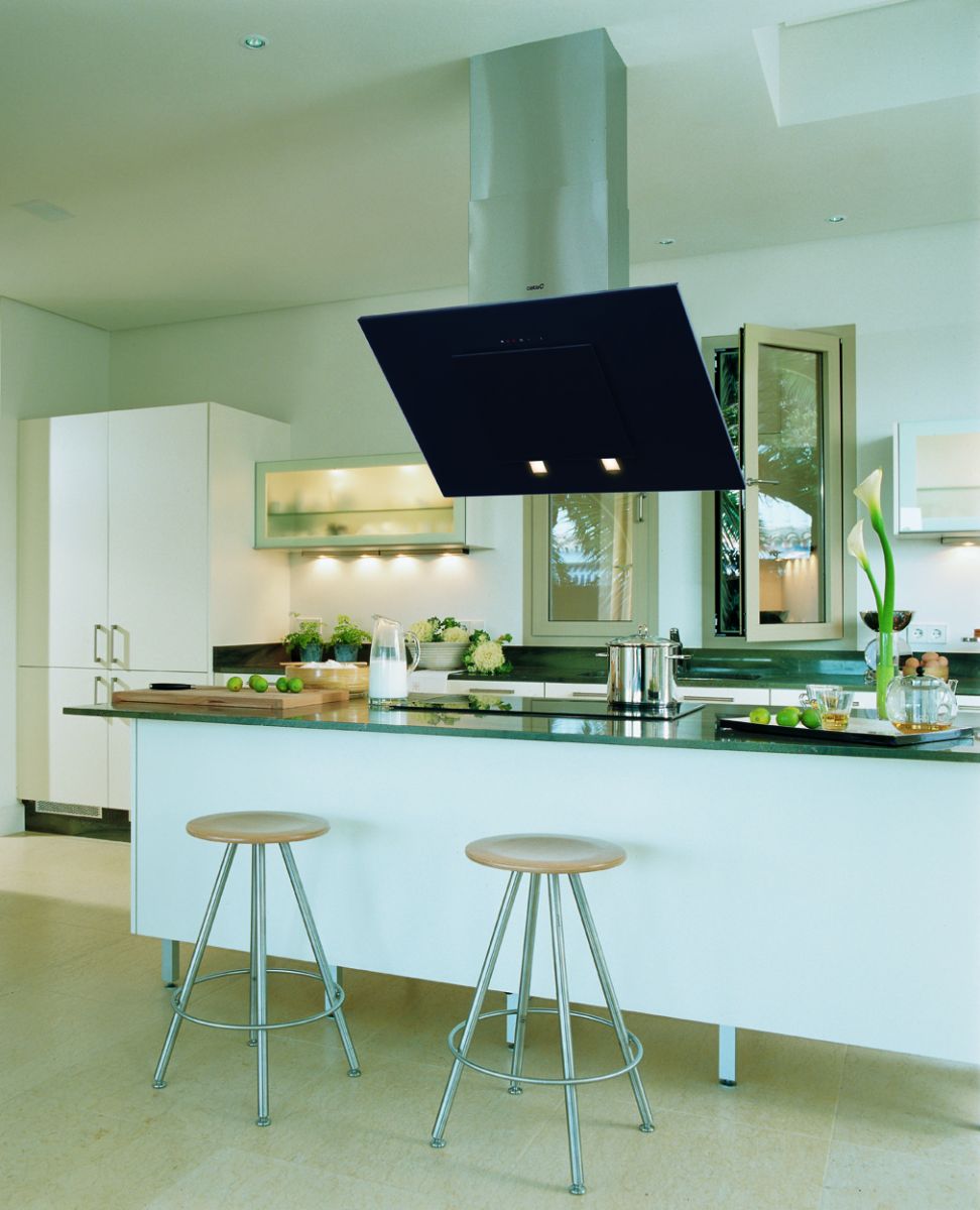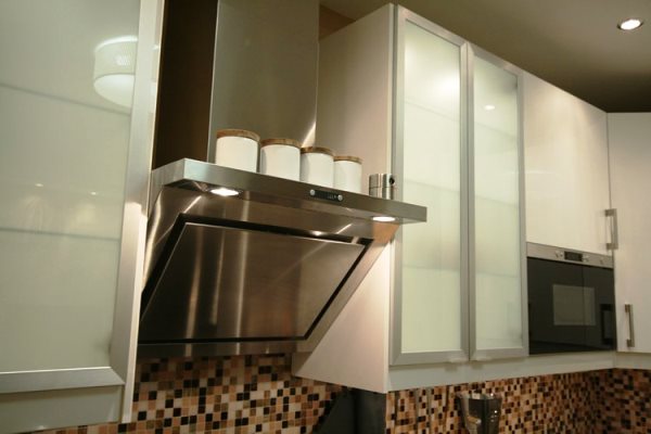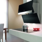 In der Küche von modernem Stil passen schräge Glashaube. Weiß, Beige oder Schwarz - hängt vom Farbschema Ihres Küchensets und dem Raum als Ganzes ab.