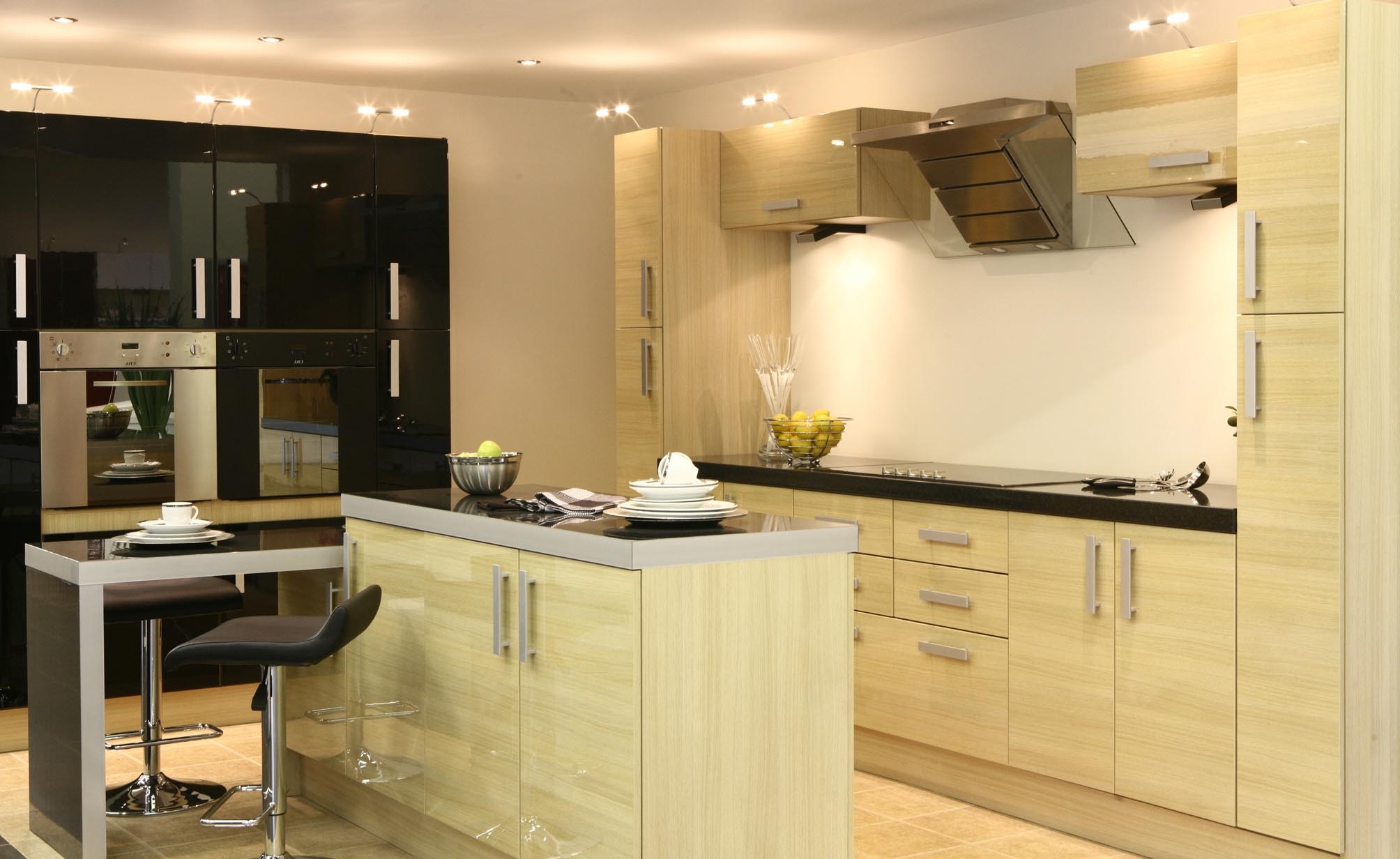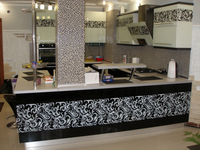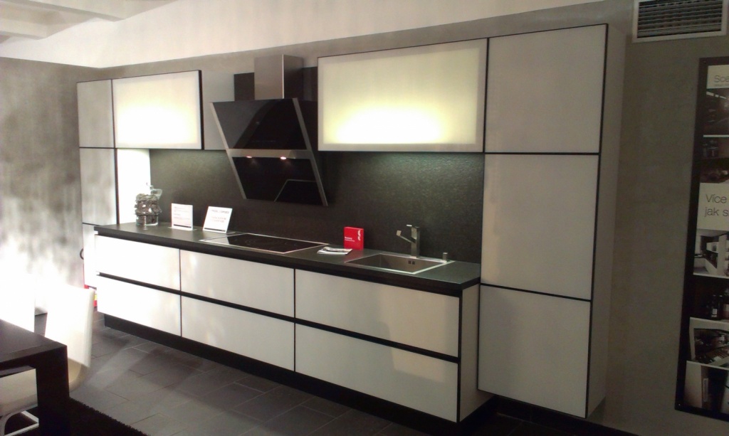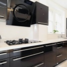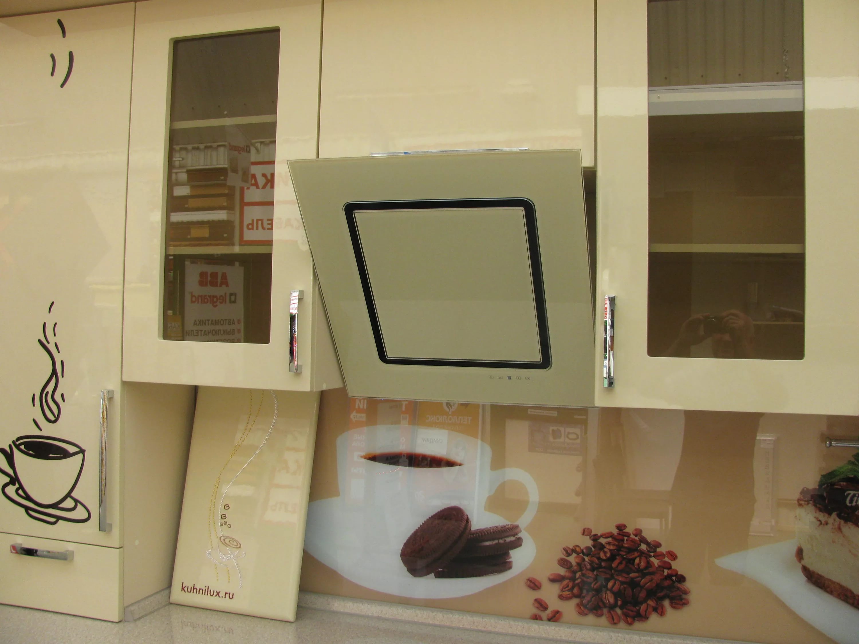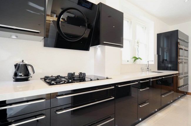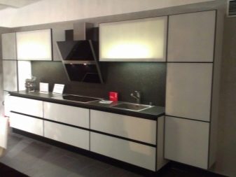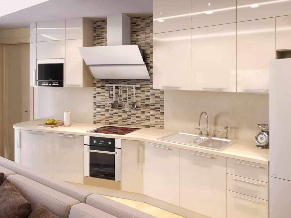 In der Küche von modernem Stil passen schräge Glashaube. Weiß, Beige oder Schwarz - hängt vom Farbschema Ihres Küchensets und dem Raum als Ganzes ab.