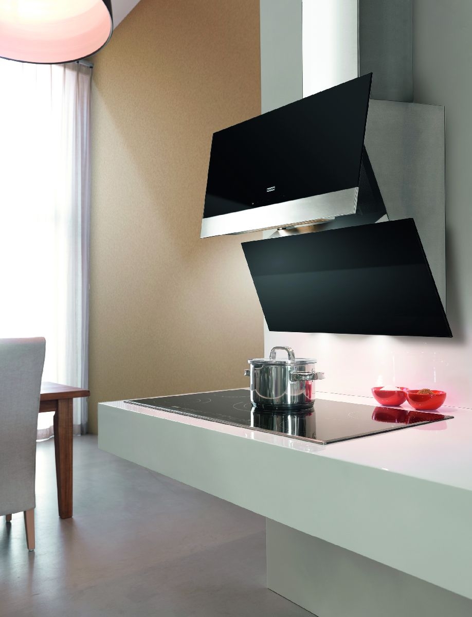 Die moderne Schräghaube ist nicht nur ein High-Tech-Gerät zur Reinigung von Luft von Schmutz und Gerüchen, sondern auch ein zusätzliches Accessoire für die Inneneinrichtung, dessen raffinierte Formen und unübertroffener Stil Ihrer Küche ein einzigartiges Aussehen verleihen.