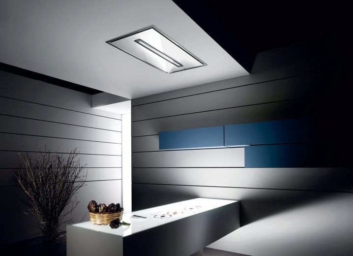 Einige Küchenausführungen implizieren eine schräge Haubenbefestigung an der Decke. Das Design-Feature ermöglicht es. Wenn Sie jedoch die Schräghaube an der Decke montieren, prüfen Sie, ob die Installation sicher ist.