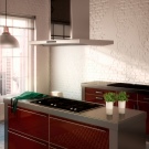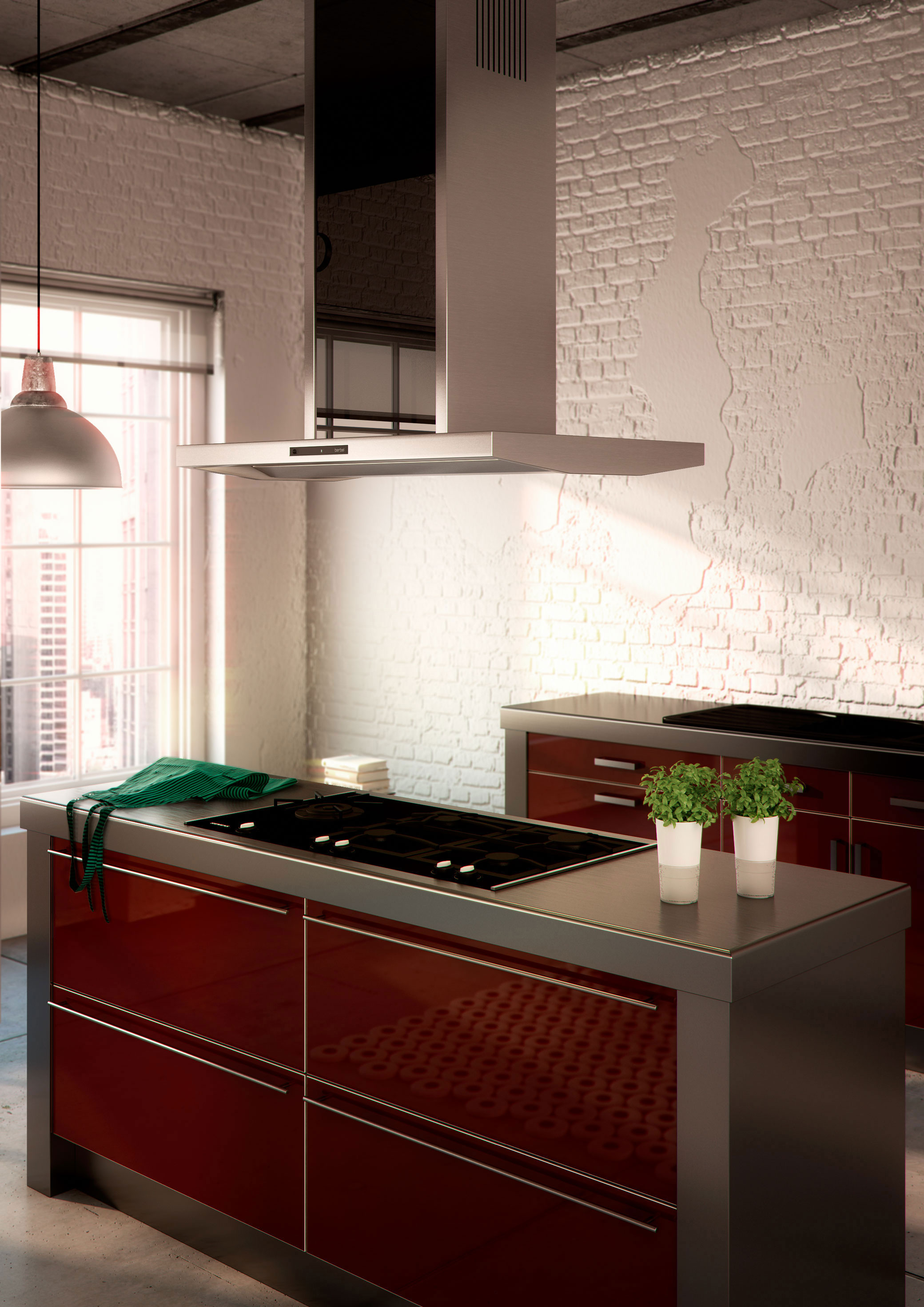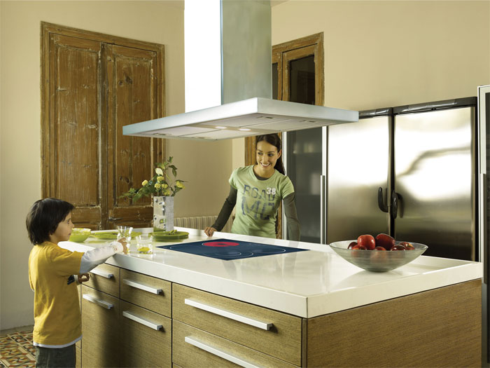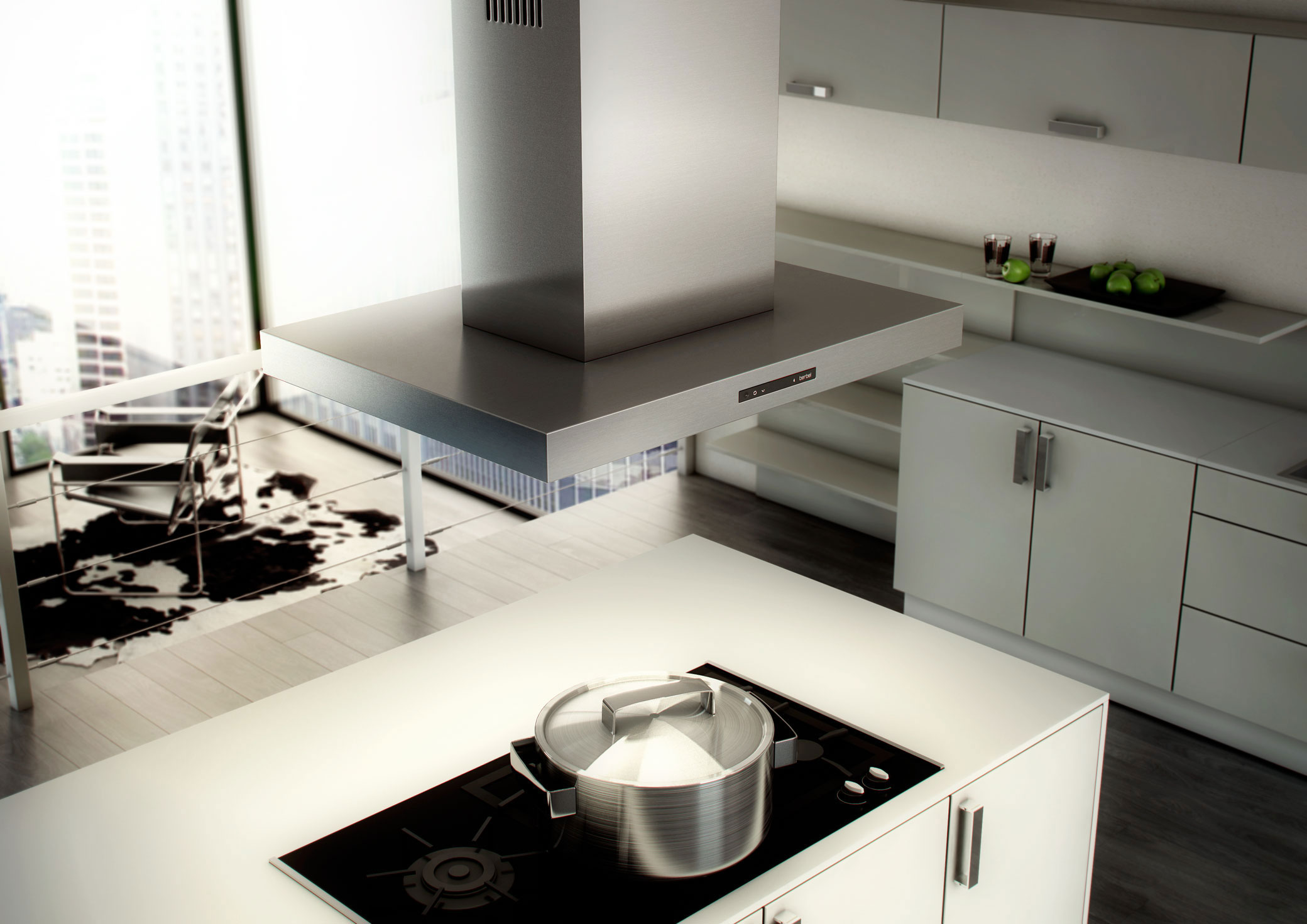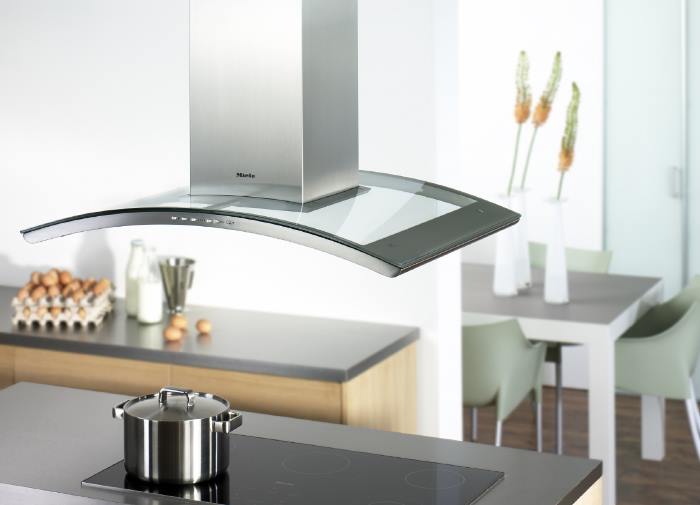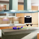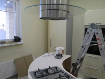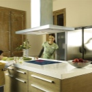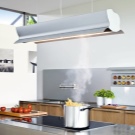 - Der Hauptvorteil der Inselkonstruktion ist die Möglichkeit, überall in der Küche, aber über dem Kochfeld zu montieren.