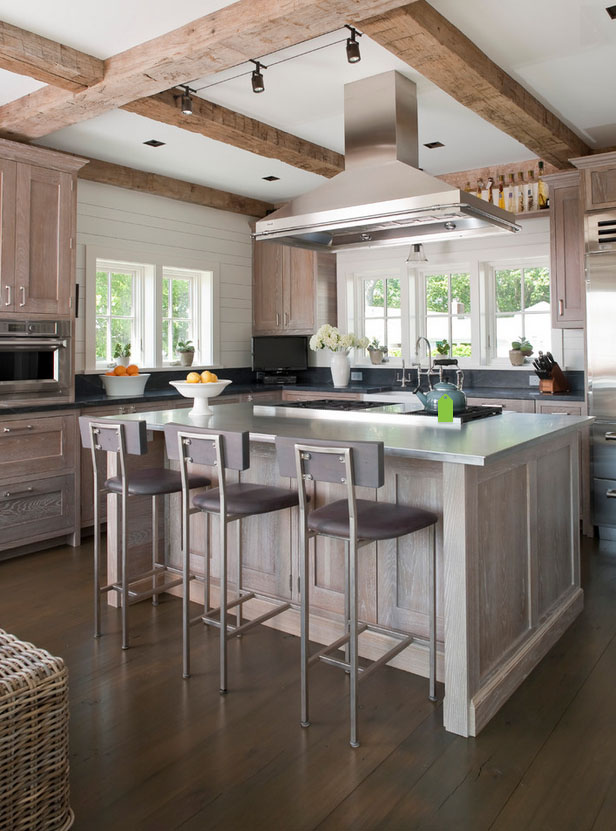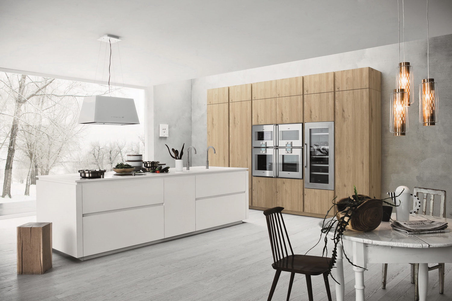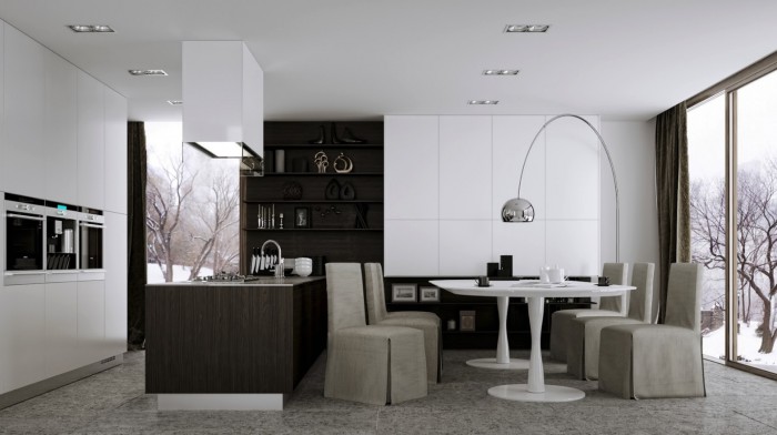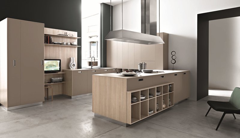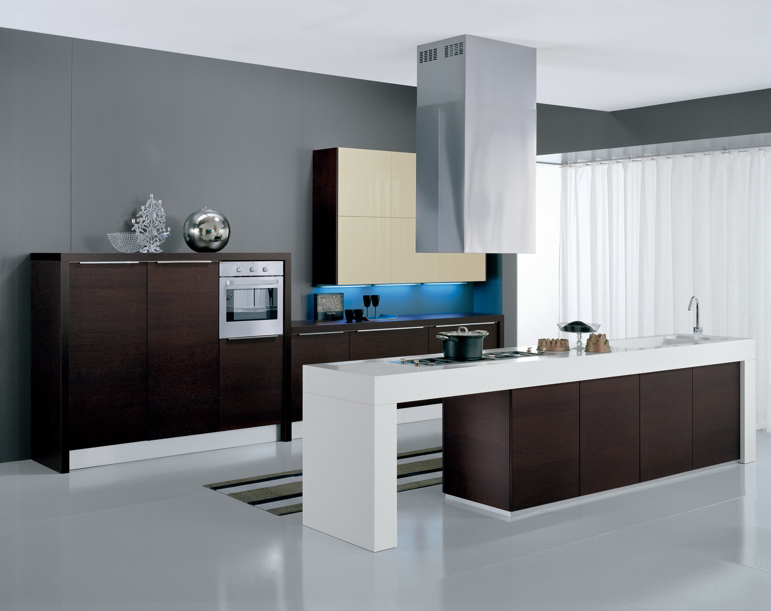 Wenn die Küche geräumig ist, und der Bereich erlaubt Ihnen, zu experimentieren, ein einzigartiges Design schaffend, empfehlen Experten, ein Kochfeld in der Insel zu legen, zum Beispiel, es kann der zentrale Teil der Küche sein. Die Inselhaube ist eine modische und originelle Lösung, mit der Sie die Kochzone in die Mitte des Raumes bewegen können. Inselauszüge eignen sich für Räume mit einer Fläche von mehr als 20 qm. In der Insel Herd, Backofen, Arbeitsplatte, Waschbecken.Wenn alle Hauptelemente des Arbeitsbereiches zusammen sind, müssen Sie separat Wasser und Abwasser mitbringen.