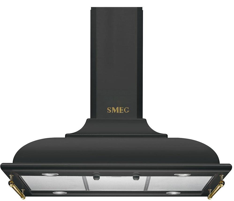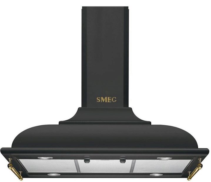 - Smeg. Raffinierte und stilvolle Modelle von Inselhauben der Marke Smeg tragen zur Attraktivität der Küche bei und schaffen einen modernen Akzent. Für die Herstellung von Inselmodellen verwendet der Hersteller Edelstahl, Glas, Emaille, Messing. Das Modell aus der Cortina KCI19AOE Serie hat ein ästhetisches Design aus Anthrazit. Das Kit enthält Seitengitter aus Messing, drei Geschwindigkeiten, drei Filter, 754 Kubikmeter pro Stunde.