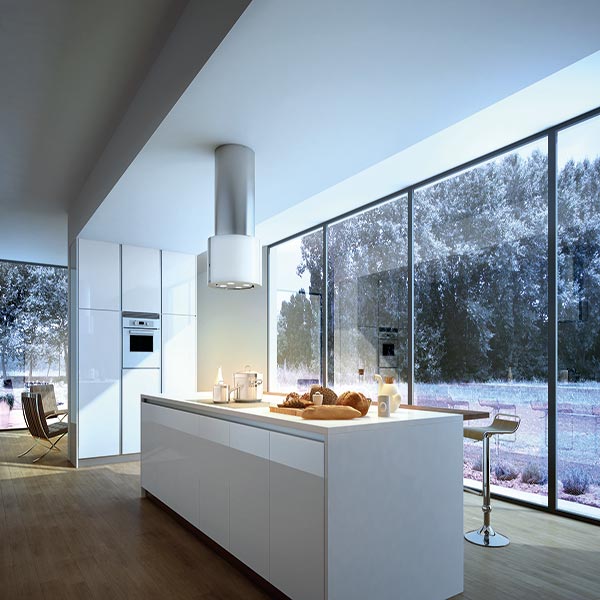 - Falmec. Einer der führenden Hersteller von Inselextrakten in Italien. Die technische Ausstattung der Inselhauben ist innovativ und das durchdachte Design der Strukturen fügt sich perfekt in das Hightech-Interieur ein. Grundsätzlich wird Edelstahl zur Herstellung von Inselhauben verwendet. Die Oberfläche der Struktur wird durch spezielles Sprühen geschützt, das das Auftreten von Fettflecken und Fingerabdrücken verhindert.