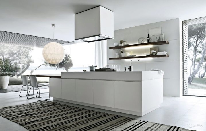 Besitzer von geräumigen Küchen, Designer empfehlen dringend, auf die Inselhauben zu achten. Sie setzen einen stilvollen und modernen Akzent im Interieur und machen die Küche zum Mittelpunkt eines gemütlichen und funktionalen Hauses.