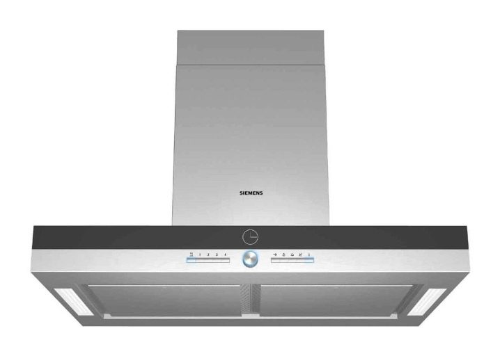 - Siemens LG 95950. Inselhaube mit einer minimalistischen Erscheinung, einem strengen und prägnanten Design. Es besteht aus klaren Linien und einfachen Formen. Großartig für High-Tech-Innenarchitektur. Das Modell ist aus strapazierfähigem Edelstahl gefertigt. Seine hohe Leistung reicht aus, um große Räume (800 Kubikmeter / m) zu reinigen. Hood dieser Marke kann eine Ablenkung und Rezirkulation sein. Plus der Entwurf ist, dass es mit Halogenbeleuchtung ausgestattet ist und vier Betriebsmodi hat.