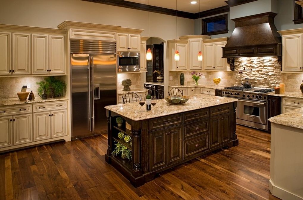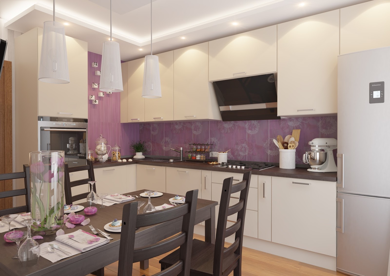 Meistens sind Dunstabzugshauben in einer Haube eingebaut, die die Haube perfekt ergänzt und die Küche harmonisch und schön macht. Meistens kommt der Abzug als ein Element der Kücheneinheit.Wenn Sie in der Zukunft planen, die Haube zu installieren, dann planen Sie ein Küchendesign mit einer Haube über dem Gewindebohrer.