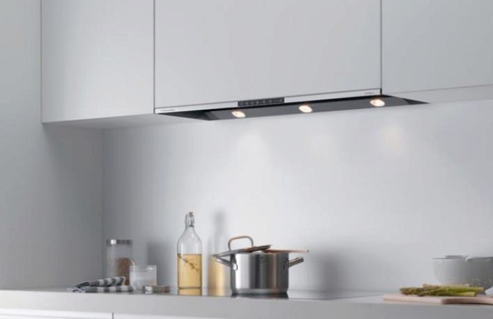 Ausziehbare Hauben gelten als äußerst komfortabel und sparen deutlich Platz über dem Ofen. Die versenkbare Kapuze ist in der Kapuze montiert und hat ein interessantes Design. Bei Bedarf können Sie einen Teil der Haube verlängern, mit der Sie die Luft über die gesamte Oberfläche des Ofens reinigen können.