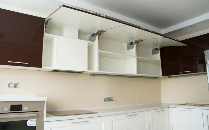 Wenn Sie nicht die gesamte Fläche der Haube nutzen müssen, können Sie sie einschalten, ohne nach vorne zu drücken. Der vordere Teil der Dunstabzugshaube ist in der Farbe des Küchensets maskiert, wodurch sie komplett unsichtbar ist und Sie das Farbdesign der Küche nicht stören können. In diesem Fall muss die Haube zusammen mit der Kücheneinheit installiert werden, was wiederum unter Berücksichtigung der Eigenschaften der Haube erfolgt.