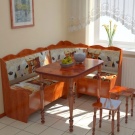 Modelle mit einem ausziehbaren Sitz ermöglichen Ihnen, die Ecke noch geräumiger zu machen - ohne die Küche zu beeinträchtigen. Auf einem solchen Sofa können doppelt so viele Gäste sitzen und bei Bedarf lässt es sich auch leicht in ein Einzelbett verwandeln.