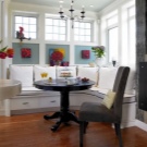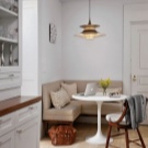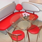 - Armlehnen - es ist immer bequem für jemanden, der sitzt, aber sie vergrößern optisch die Größe von Möbeln, was nicht immer gut für eine kleine Küche ist.
