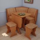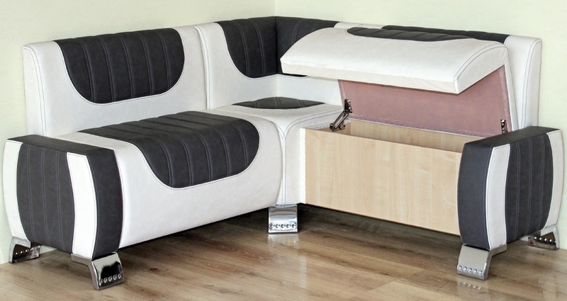 Der Hauptunterschied zur vorherigen Ansicht ist das Fehlen einer linken oder rechten Richtung, da solche Ecken aus drei Modulen bestehen, die bereits für eine bestimmte Küche zu einem einzigen Ganzen zusammengefügt werden, um auf den Raum zu reagieren. Die Zone mit den Boxen kann unter jedem der Sitze sein, und nicht nur in der Mitte, wie im "Monolith".