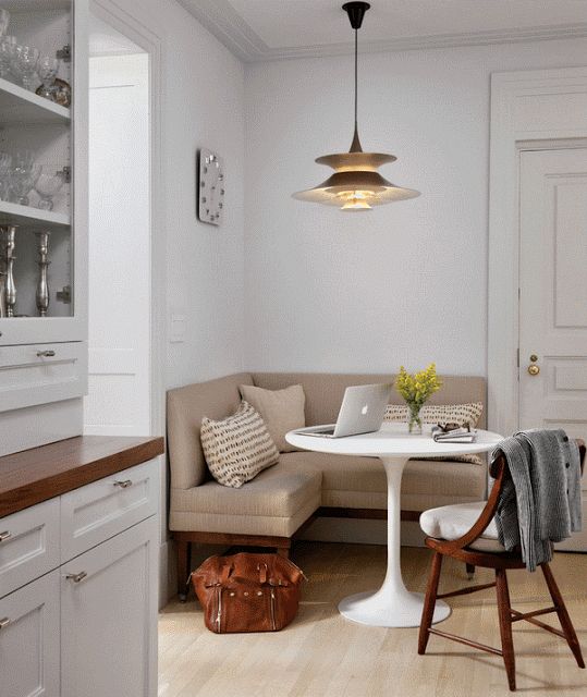 - Bei sehr kleinen Räumen können Sie eine kleine Ecke ohne Rückenlehne wählen - dies geschieht auch, und die Qualität ihrer Montage ist oft sogar besser als die der "Klassiker".