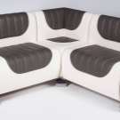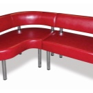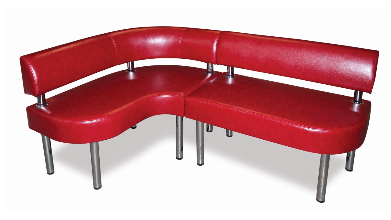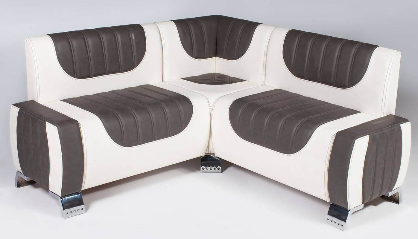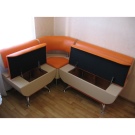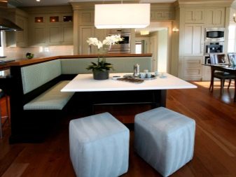 Dieses Möbelstück besteht aus einer Insel, die in der Ecke des Raumes selbst installiert ist, und Sitzbereichen mit Rückenlehnen.