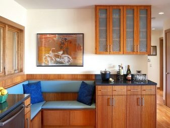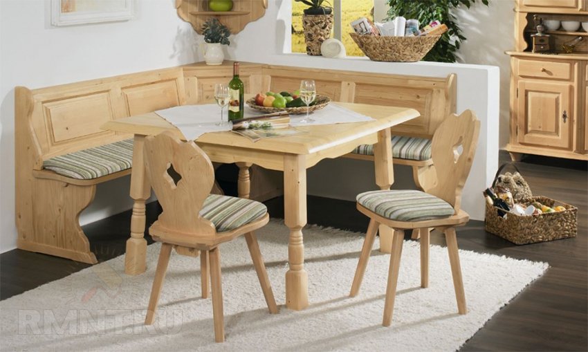 - Auch Küchenecken können aus Holz sein. Es wird sicherlich teuer sein. Aber die Natürlichkeit und Umweltfreundlichkeit dieses Materials ist es wert.