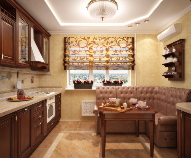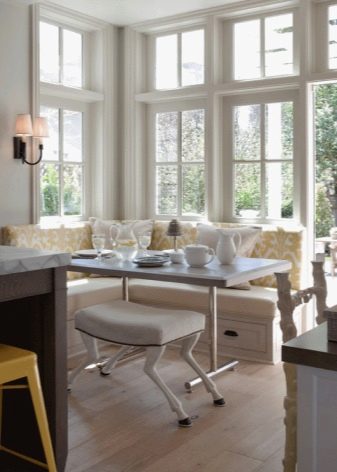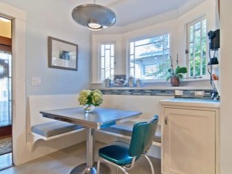 - Die runde Küchenecke kann nicht nur in der Ecke, sondern auch in der Mitte des Raumes platziert werden.