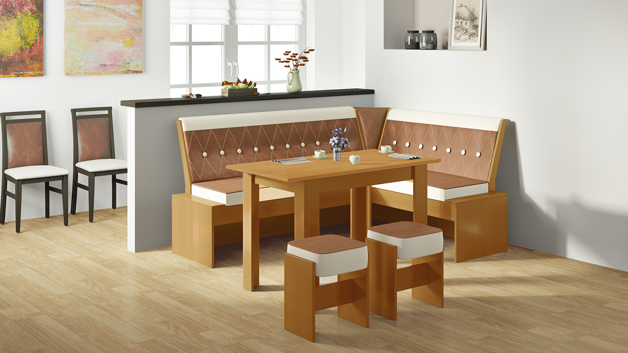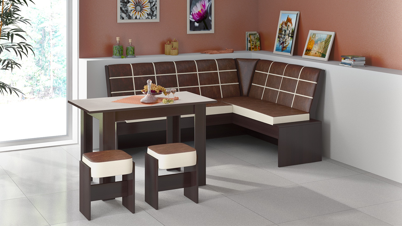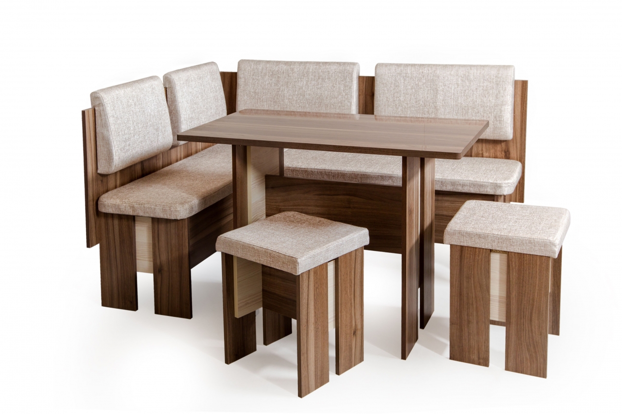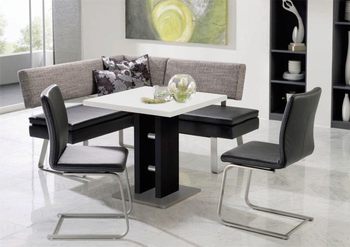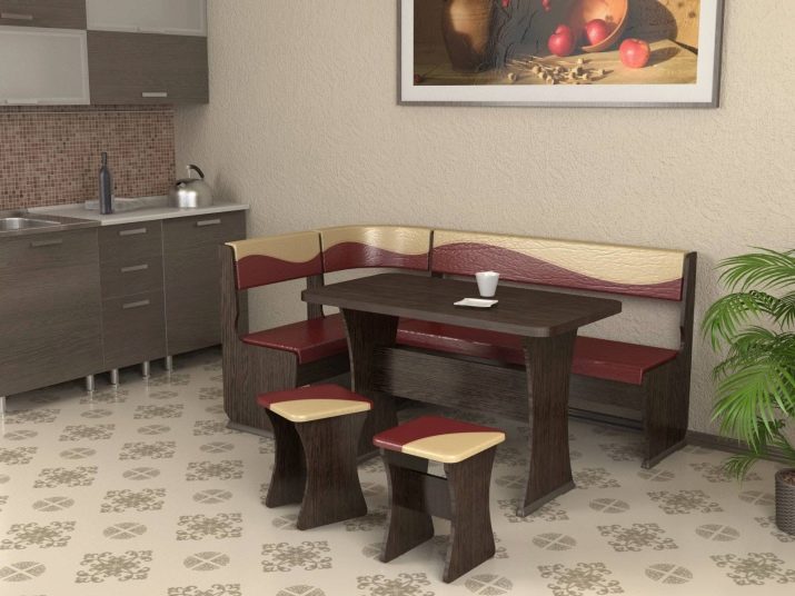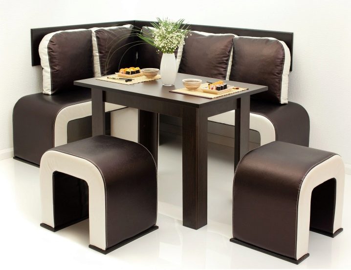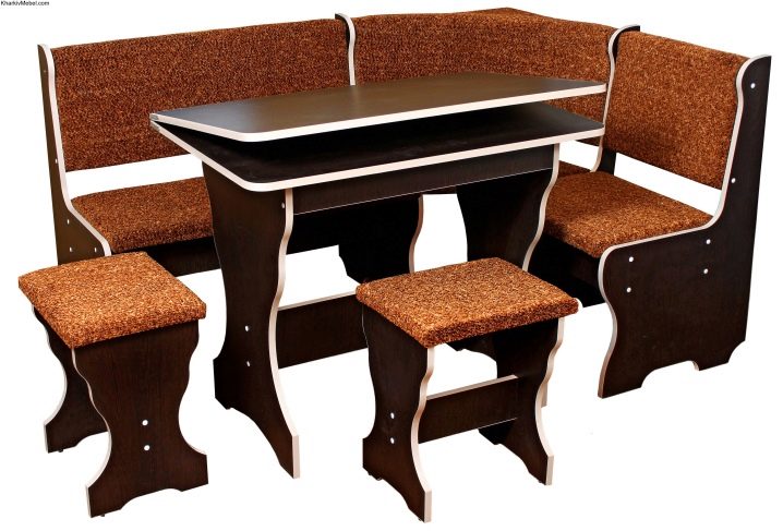 Solche Möbelsets als Küchenecke mit einem Tisch und Stühlen gewannen Popularität aufgrund ihrer Benutzerfreundlichkeit, der Gemütlichkeit, die in der Küche geschaffen wurde, sowie der Einfachheit und Vielfalt der Auswahl und Leichtigkeit der Wartung. Zur Erweiterung der Funktionalität können sie mit einem Sofa und Puffs ausgestattet werden. Bevor Sie diese Kategorie von Produkten kaufen, müssen Sie überlegen, wo Sie sie hinstellen und wie Sie sie verwenden.Wenn Ihre Wahl realisiert und gewogen wird - Sie werden nicht in den Kauf enttäuscht sein und werden mit jedem Tag zufrieden sein, der es besitzt.