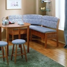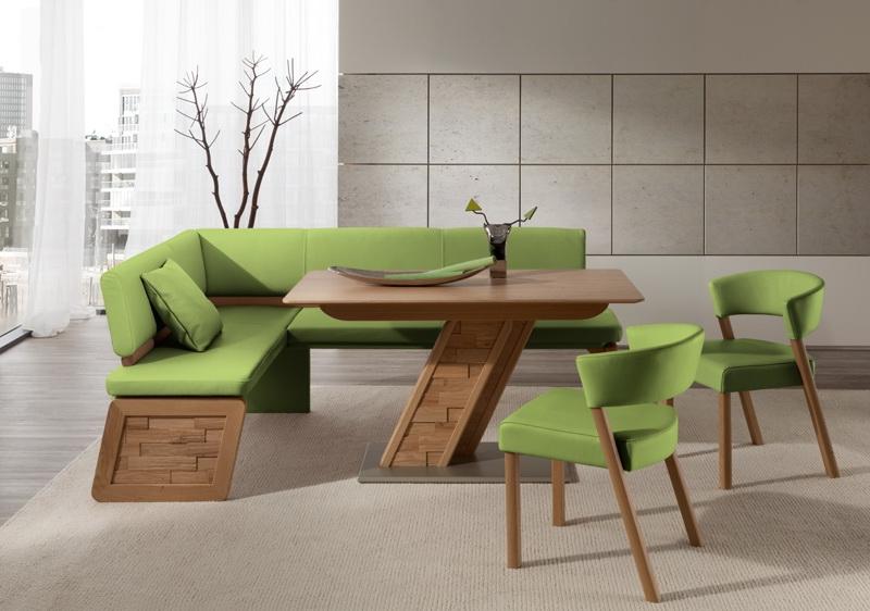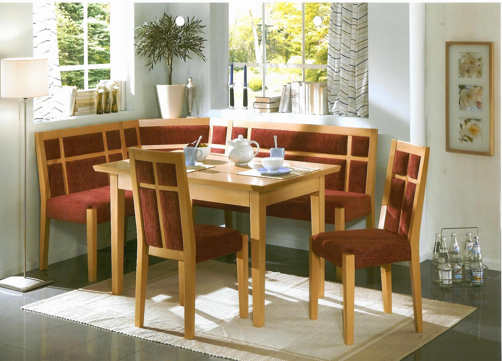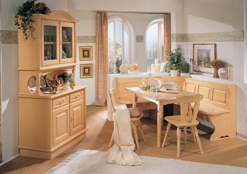 - Land Dieser Stil ist einfach und praktisch. In den meisten Fällen sind Küchenecken im Landhausstil aus Holz und haben Polster aus Naturstoffen oder Leder oder verzichten darauf.