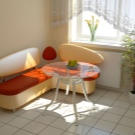 Es ist sehr angenehm zu frühstücken oder zu Abend zu essen in der Küche, die auch gemütlich ist, wie in Ihrem Lieblingsschlafzimmer oder Wohnzimmer. Durch die Verwendung moderner Küchenecken im Design ist es möglich, die Küche besonders und komfortabel zu machen.