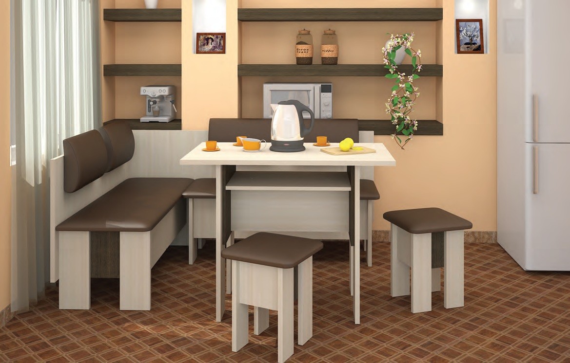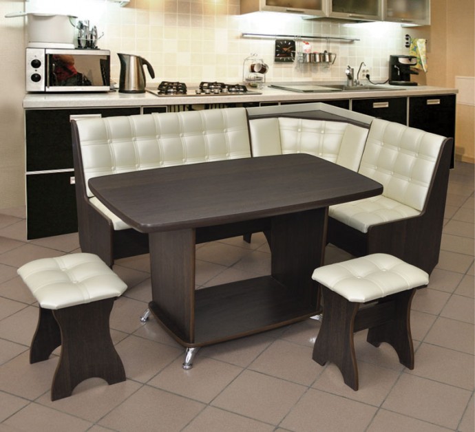 Hauptfunktion und Funktion der Küchenecke ist jedoch die Schaffung von Komfort und einzigartiger Behaglichkeit, die dank einer Vielzahl von Textil- oder Lederbezügen geschaffen wird.