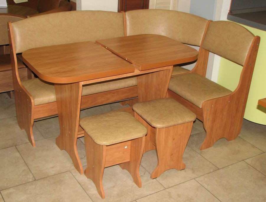 Kaufen Sie eine Ecke für die Küche, vergessen Sie nicht freistehende Stühle und Stühle, die oft enthalten sind. Ohne sie kann die Küche nicht. Sehr oft müssen Sie die obersten Regale erreichen und ein Stuhl kommt immer zur Rettung. Wie für die Stühle aus der Küchenzeile, haben sie in der Regel Platz für die Lagerung.