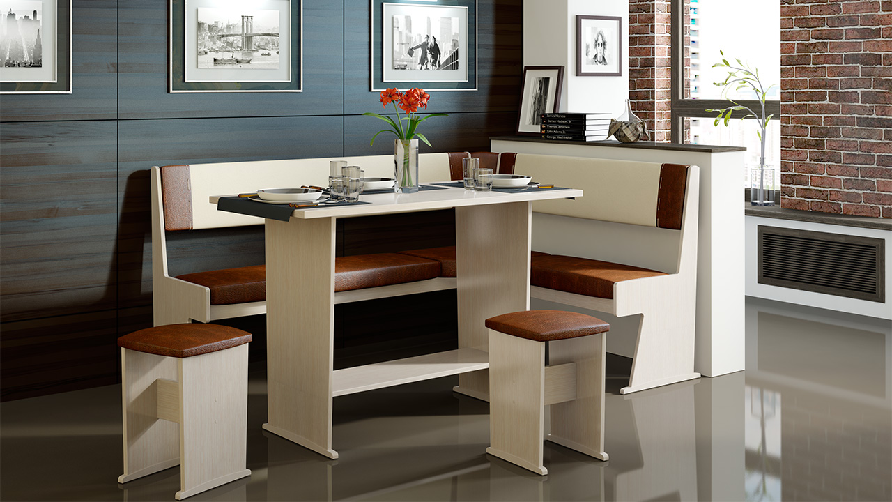 Kaufen Sie eine Küchenecke, nach Ihren Wünschen, aber vergessen Sie nicht das stilistische Design der Küche. Lassen Sie das gemütliche Sofa zu einem Ort der Ruhe und freundlichen Begegnungen werden.