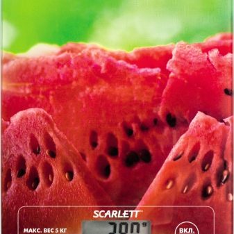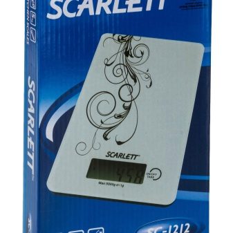 Produkte Scarlett erfüllt alle diese Parameter vollständig. Zu den Vorteilen gehören große Touch-Tasten, elegantes Design, einfache Handhabung. Die integrierten Funktionen variieren je nach Modell. Alle Waagen bestehen aus hochfestem Glas, das Belastungen von bis zu 150 kg standhalten kann.