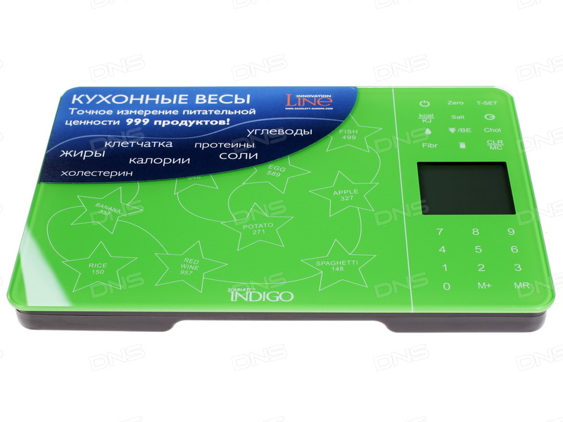 Scarlett Indigo und IS-565 Modelle verfügen über Kalorienzähler. Darüber hinaus wurden dem Speicher des IS-565 Informationen über nützliche Elemente von mehr als 900 Produkten hinzugefügt. Das Lineal ist in einer großen Farbauswahl erhältlich und besteht aus schlagfestem Glas.