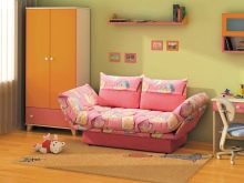 - Couch-Sofa für KinderAuch mit einem Roll-out-Mechanismus ausgestattet. Der Hauptunterschied besteht jedoch in der Anwesenheit von nur einer Armlehne. Aufgrund der Anwesenheit von Pads und Ottomane im Set, wird der Prozess der Verwendung eines Kindes Ottomane bequemer und komfortabler für Sie und für das Kind.
