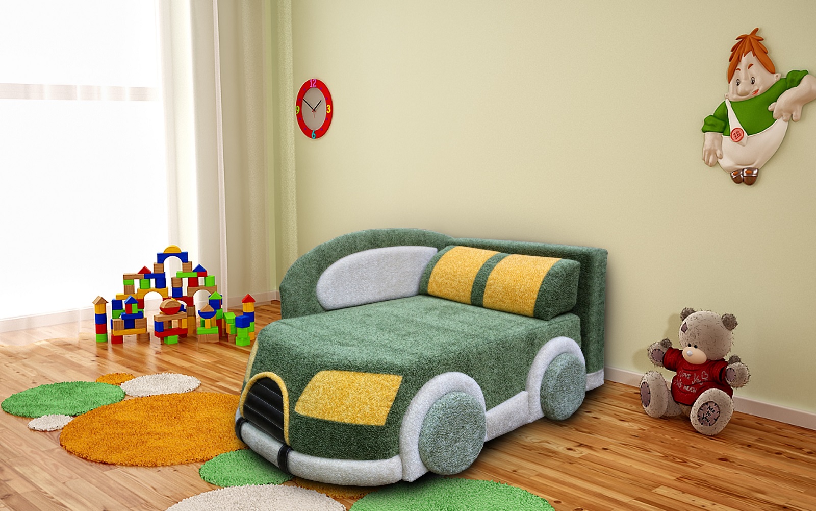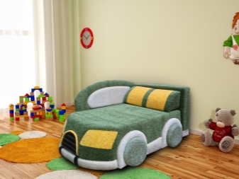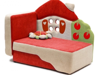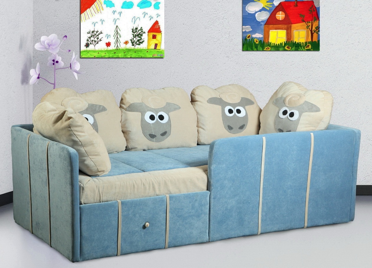 - Speicherplatzoptimierung - Dies gilt insbesondere für kleine Kinderzimmer oder für eine Einzimmerwohnung, wenn das Kind kein eigenes Zimmer hat. Eine kleine Couch oder Couch hilft, den Raum zu zonieren, so dass viel Platz für Spiele tagsüber bleibt und sich nachts in einen Schlafplatz verwandelt.
