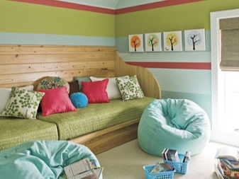 Wenn Sie ein Farbschema wählen, wenden Sie sich an Ihr Baby. Kinderliege sollte nach dem Geschmack des Kindes sein und seinem Geschmack entsprechen. Eine helle, fröhliche Farbgebung passt zu Ihrem Kind, auf der die Charaktere Ihrer Lieblingskarikaturen oder Märchen abgebildet werden können.